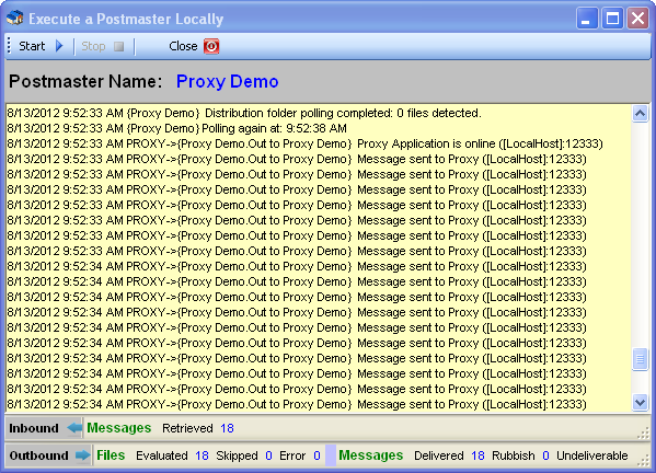 Step 4. You are now ready to run! Make sure that you save your Proxy Demo postmaster by clicking