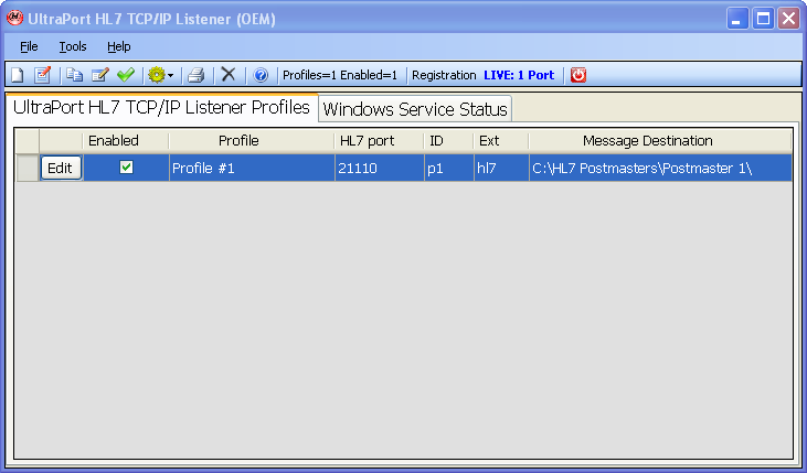 The UltraPort HL7 Postmaster comes with an OEM version of the UltraPort HL7 TCP/IP Listener which is enabled and comes free if you own a Distributor or Enterprise license. Terms and conditions apply, see below for details.